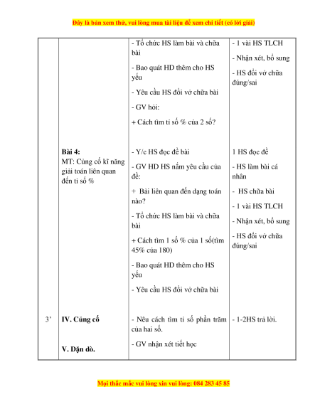- Nêu cách tìm tỉ số phần trăm - 1-2HS trả lời. của hai số. - GV nhận xét tiết học V. Dặn dò.
