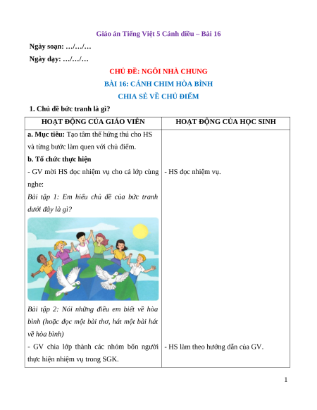 BÀI 16: CÁNH CHIM HÒA BÌNH
