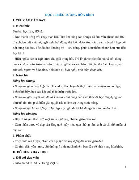 ĐỌC 1: BIỂU TƯỢNG HÒA BÌNH