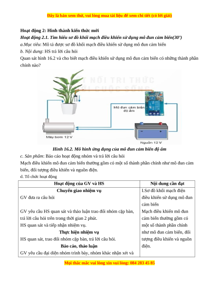 Hoạt động 2.1. Tìm hiểu sơ đồ khối mạch điều khiển sử dụng mô đun cảm biến(30’)