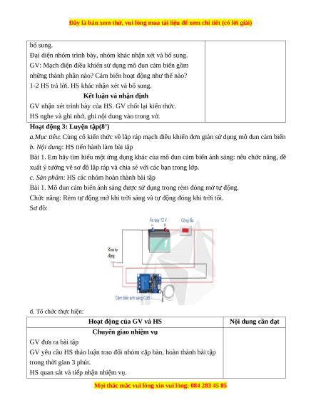 a.Mục tiêu: Khắc sâu kiến thức về mạch điện điều khiển sử dụng mô đun cảm biến
