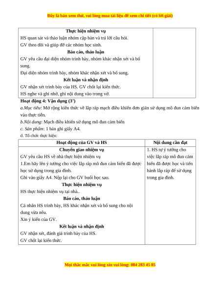 Giáo án Bài 16 Công nghệ 8 Kết nối tri thức: Mạch điện điều khiển sử dụng mô đun cảm biến