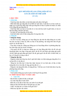 Giáo án Bài 16 Địa lí 10 Cánh Diều (2024): Quy mô dân số, gia tăng dân số và cơ cấu dân số thế giới