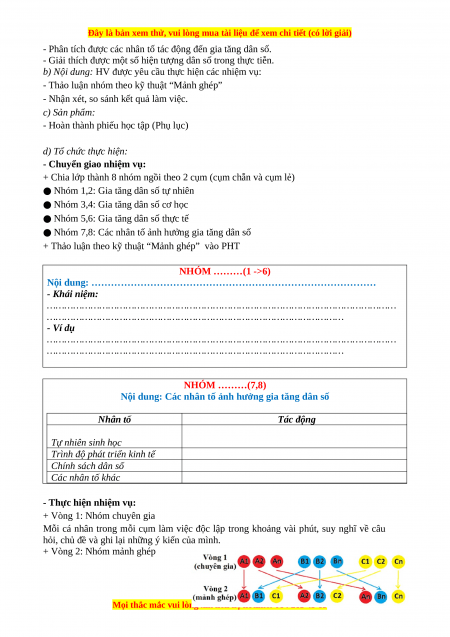 - Thảo luận nhóm theo kỹ thuật “Mảnh ghép”