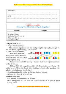 - Phiếu học tập làm việc nhóm - Bài trình chiếu