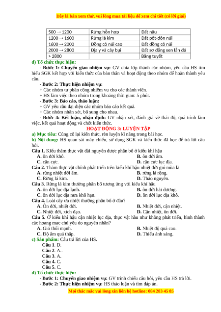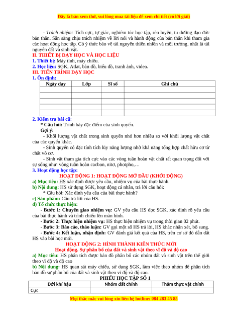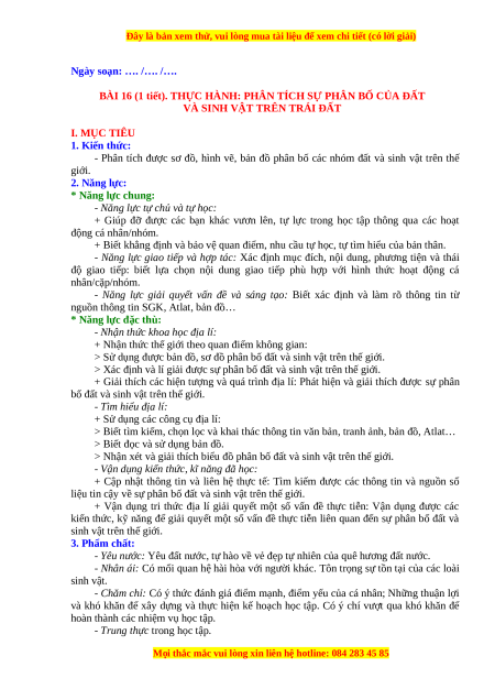 kiến thức, kỹ năng để giải quyết một số vấn đề thực tiễn liên quan đến sự phân bố đất và sinh vật trên thế giới. 3. Phẩm chất: