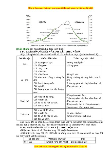 II. SỰ PHÂN BỐ ĐẤT VÀ SINH VẬT THEO ĐỘ CAO