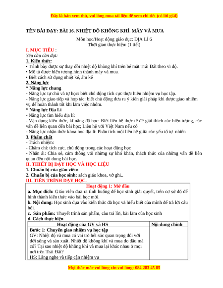TÊN BÀI DẠY: BÀI 16. NHIỆT ĐỘ KHÔNG KHÍ. MÂY VÀ MƯA
