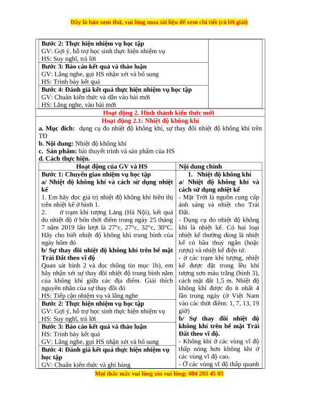Hoạt động 2.1: Nhiệt độ không khí