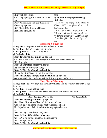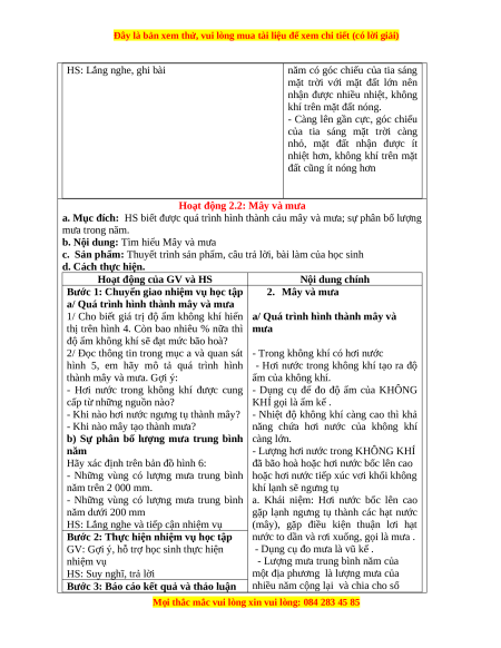 a. Mục đích: HS biết được quá trình hình thành cảu mây và mưa; sự phân bố lượng mưa trong năm.