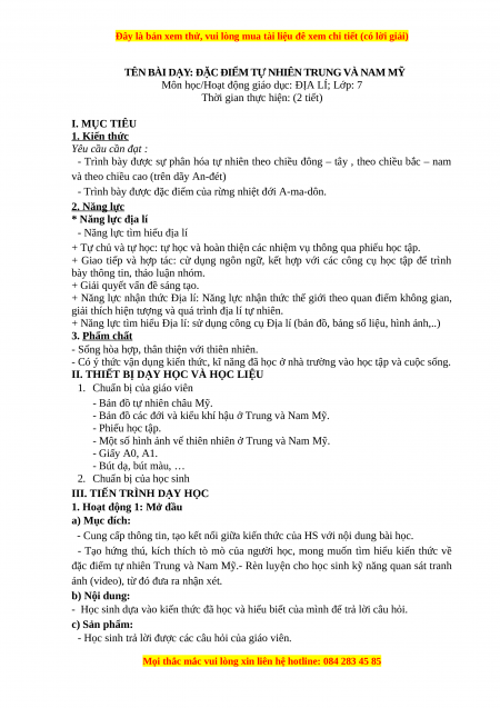 TÊN BÀI DẠY: ĐẶC ĐIỂM TỰ NHIÊN TRUNG VÀ NAM MỸ