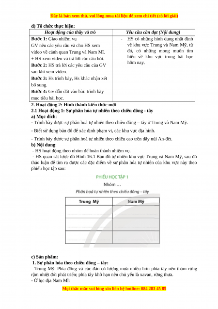 - Trình bày được sự phân hoá tự nhiên theo chiều đông – tây ở Trung và Nam Mỹ.