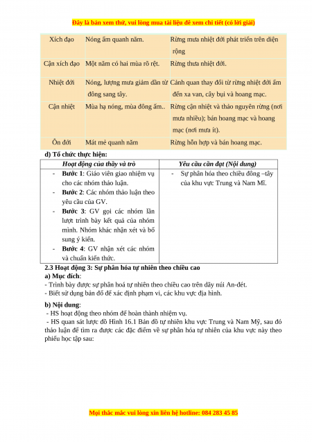 - Trình bày được sự phân hoá tự nhiên theo chiều cao trên dãy núi An-đét. b) Nội dung: