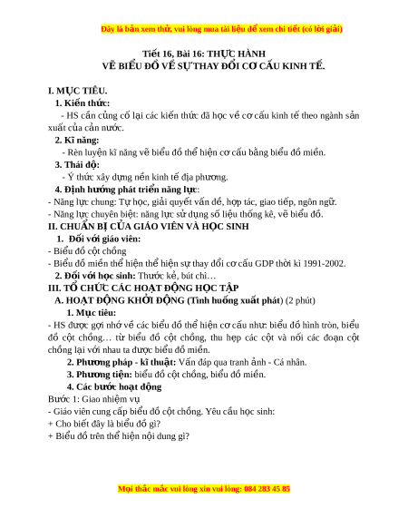 Đây là bản xem th , vu ử i lòng mua tài li u ệ đ xe ể m chi ti t ế (có l i ờ gi i ả ) Ti t ế 16, Bài 16: TH C Ự HÀNH VẼ BIỂU Đ Ồ VỀ S