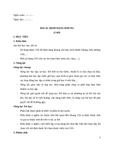 BÀI 16: ĐỊNH DẠNG KHUNG (2 tiết) I. MỤC TIÊU 1. Kiến thức