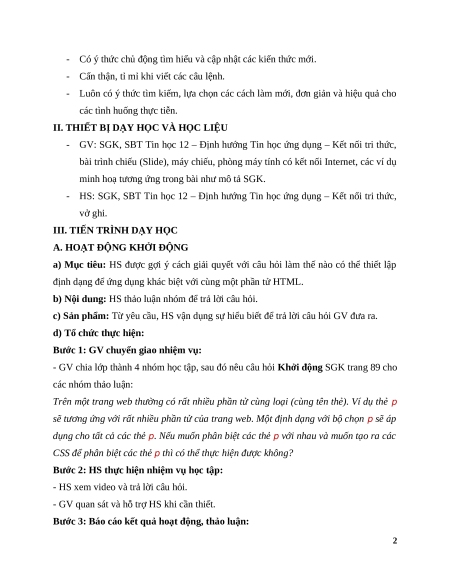 - GV yêu cầu HS vận dụng kiến thức Kết quả áp dụng mẫu CSS trên: