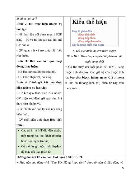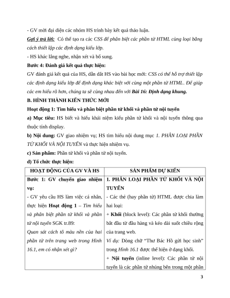 Hoạt động 1: Tìm hiểu và phân biệt phần tử khối và phần tử nội tuyến