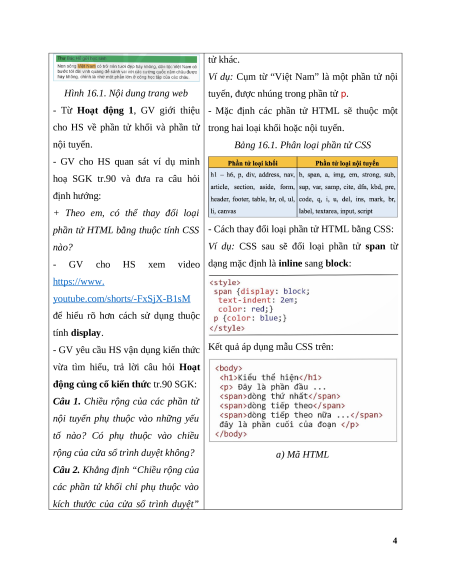 - GV cho HS xem video dạng mặc định là inline sang block: https://www.