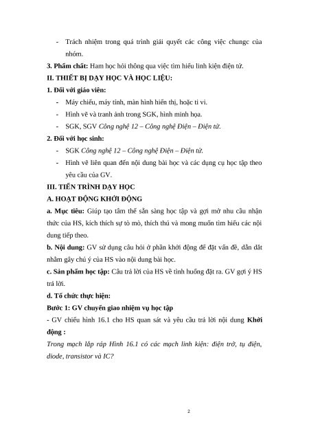 3. Phẩm chất: Ham học hỏi thông qua việc tìm hiểu linh kiện điện tử.