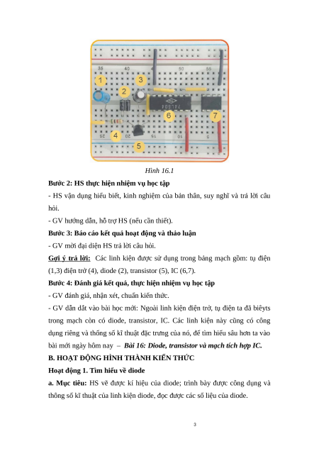 bài mới ngày hôm nay – Bài 16: Diode, transistor và mạch tích hợp IC.