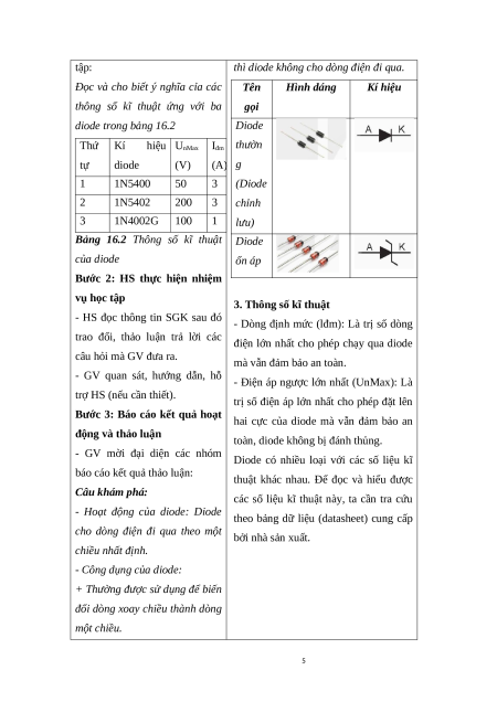 thông số kĩ thuật của linh kiện diode, đọc được các số liệu của diode. 3