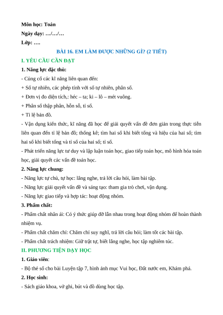 Giáo án Bài 16: Em làm được những gì? Toán lớp 5 Chân trời sáng tạo