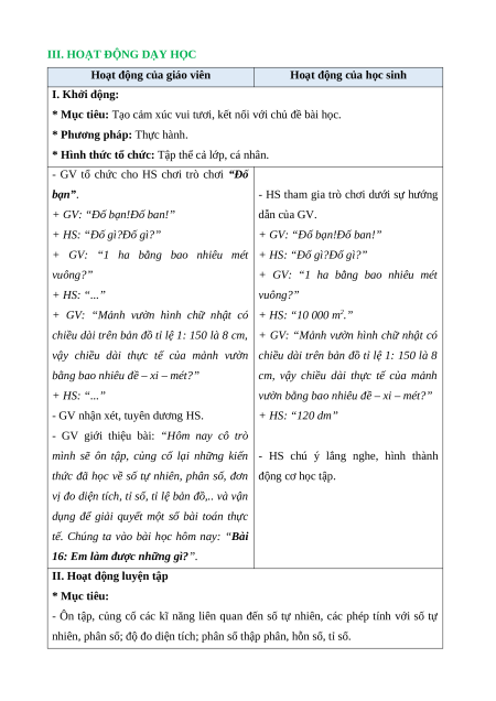 + GV: “Mảnh vườn hình chữ nhật có + HS: “10 000 m2.”