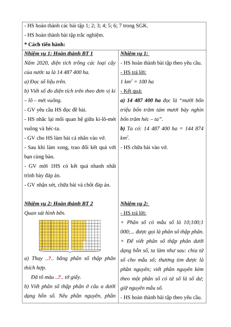 nhiên, phân số; độ đo diện tích; phân số thập phân, hỗn số, tỉ số.