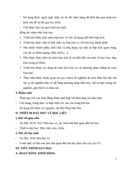 kim; nêu được tính chất của hợp kim; trình bày được một số thông tin về hợp kim của sắt và nhôm.