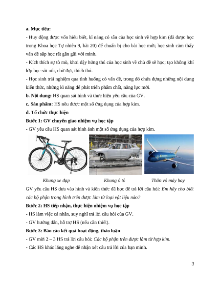 máy, ô tô hay thân vỏ máy bay thường được làm bằng hợp kim. Trong bài học hôm