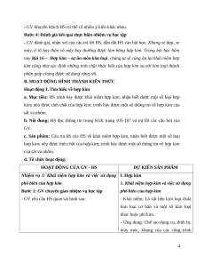 - Học sinh trải nghiệm qua tình huống có vấn đề, trong đó chứa đựng những nội dung