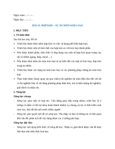 BÀI 16. HỢP KIM – SỰ ĂN MÒN KIM LOẠI I. MỤC TIÊU 1. Về kiến thức Sau bài học này, HS sẽ: