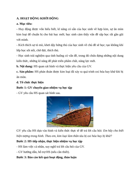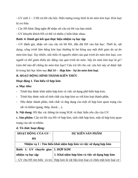 - Huy động được vốn hiểu biết, kĩ năng có sẵn của học sinh về hợp kim, sự ăn mòn