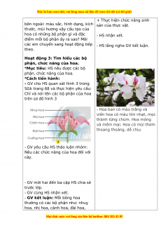- Vẽ hoặc sử dụng sơ đồ có sẵn để chỉ vị trí và nói được tên một số bộ phận của hoa.
