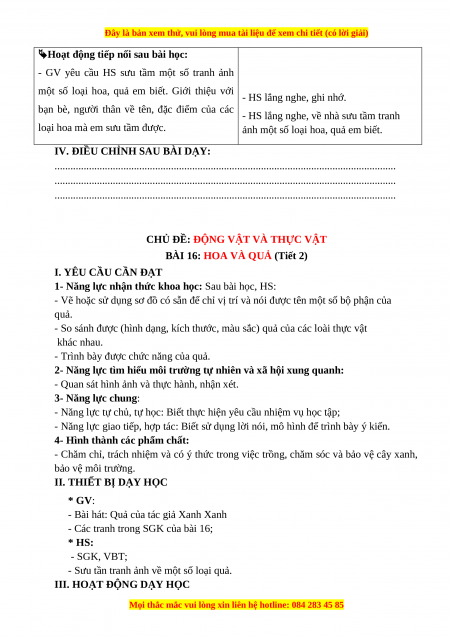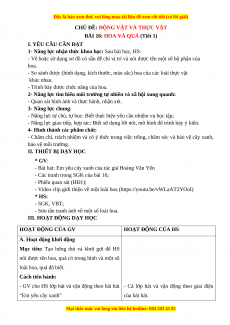 BÀI 16: HOA VÀ QUẢ (Tiết 1) I. YÊU CẦU CẦN ĐẠT