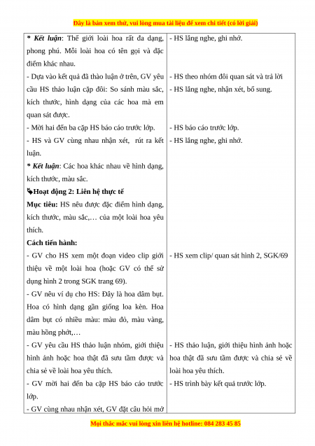 - So sánh được (hình dạng, kích thước, màu sắc) hoa của các loài thực vật khác nhau.