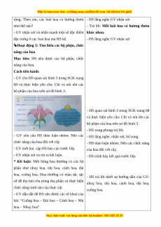 - Vẽ hoặc sử dụng sơ đồ có sẵn để chỉ vị trí và nói được tên một số bộ phận của hoa.