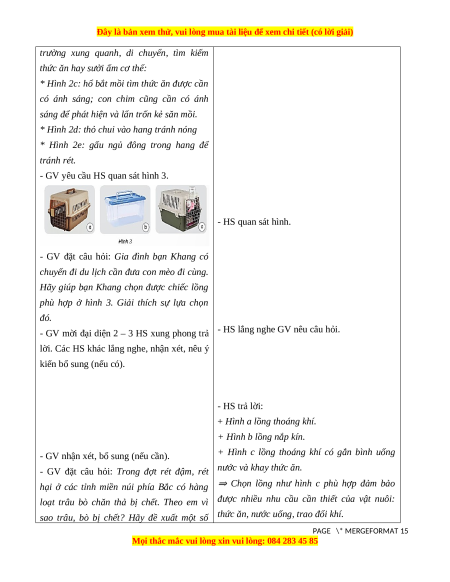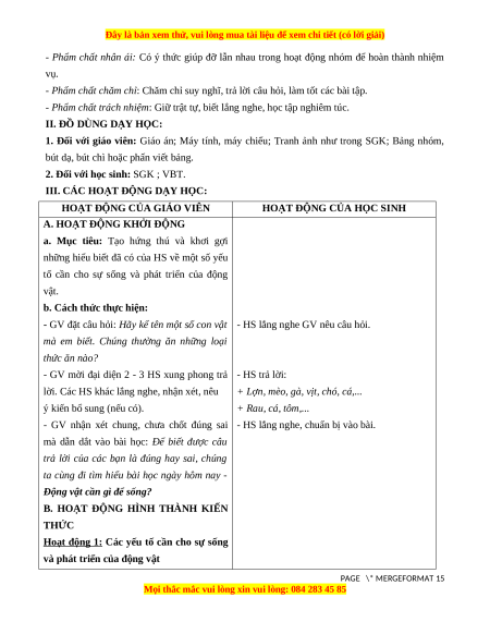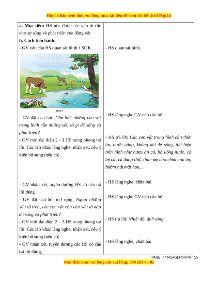 cho sự sống và phát triển của động vật. b. Cách tiến hành: