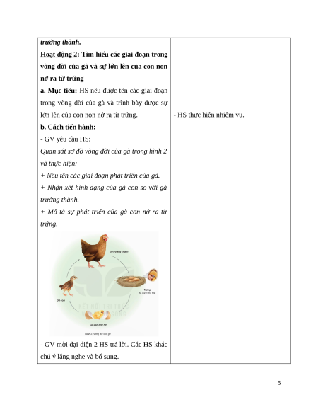 - Sự lớn lên của con non nở ra từ trứng và con non được sinh ra từ thú mẹ. 2. Năng lực: