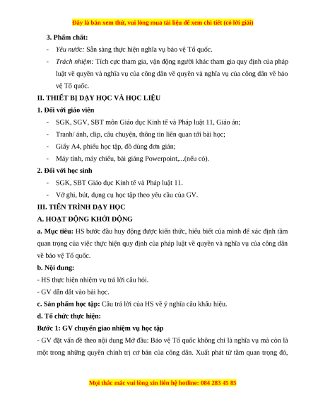 - GV đặt vấn đề theo nội dung Mở đầu: Bảo vệ Tổ quốc không chỉ là nghĩa vụ mà còn là