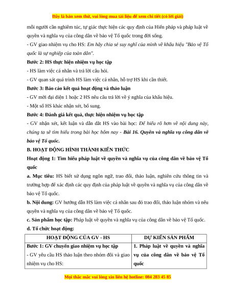 BÀI 16. QUYỀN VÀ NGHĨA VỤ CÔNG DÂN VỀ BẢO VỆ TỔ QUỐC