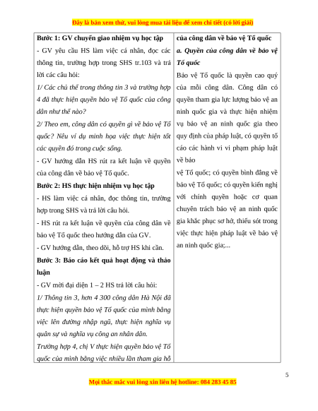 của công dân về bảo vệ Tổ quốc. b. Nội dung: