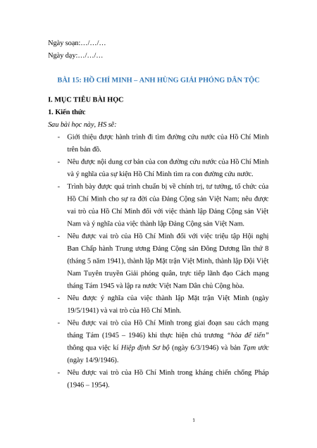 BÀI 15: HỒ CHÍ MINH – ANH HÙNG GIẢI PHÓNG DÂN TỘC