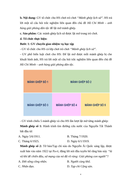 c. Sản phẩm: Các mảnh ghép lịch sử được lật mở trong trò chơi.