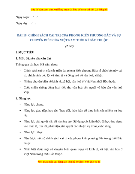 BÀI 16: CHÍNH SÁCH CAI TRỊ CỦA PHONG KIẾN PHƯƠNG BẮC VÀ SỰ