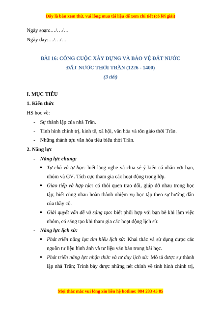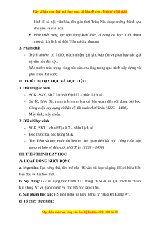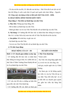 ĐẤT NƯỚC THỜI TRẦN (1226 - 1400) (3 tiết) I. MỤC TIÊU 1. Kiến thức HS học về: