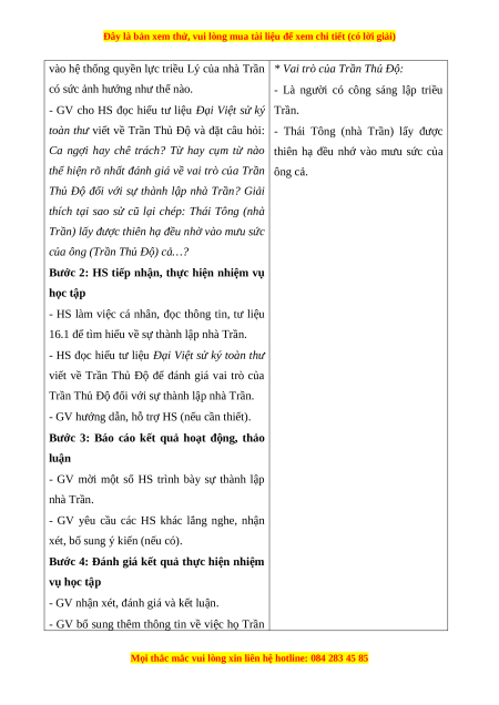 - GV giao nhiệm vụ học tập cả bài: Nhà Trần đã kiến thiết triều đình, quốc gia
