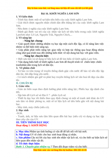 Bài 16. KHỞI NGHĨA LAM SƠN 1. Về kiến thức