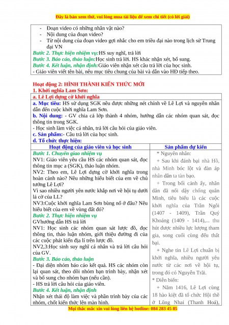 + Vận dụng hiểu biết về khởi nghĩa Lam Sơn để thuyết trình về chiến lược chiến