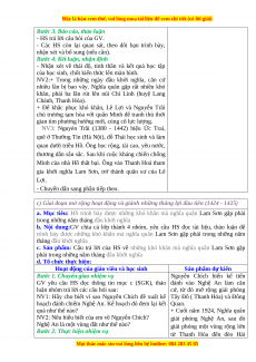 - Gợi ý trả lời NV2: + Sau khi đánh bại nhà Hồ, quyết tâm đánh đuổi giặc